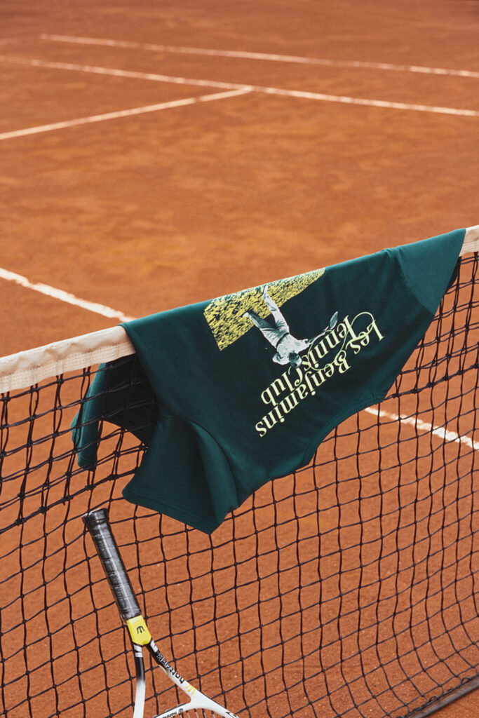 Erkekler ve kadın tasarımları içeren Les Benjamins Tenis koleksiyonu, polo tişörtler, pileli tenis etekleri ve spor şortlar tarzındaki klasik tenis görünümlerini, bomber ceketler ve grafikli baskılı tişörtler gibi kendi özgü Les Benjamins tarzıyla yorumlayıp genişletiyor