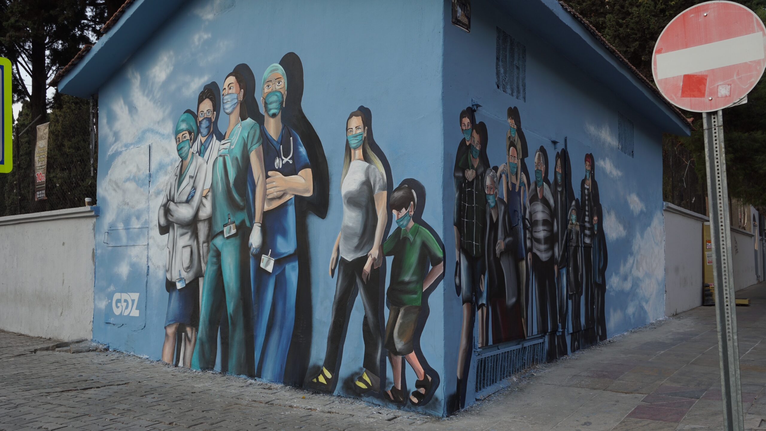 Kuzey İtalya’daki Bergamo’da, Papa Giovanni Hastanesinin dış cephesinde; sağlık çalışanlarını onurlandıran bir duvar resminin tercümesinde, “Hepinize teşekkür ederim.” yazıyor. Resim, üniformalı, kırmızı bir İtalya haritasını kollarında kucaklayan maskeli bir kadını gösteriyor. İnsanı derinden etkileyen, gerçekten iyi düşünülmüş olan bu duvar resmi; pandeminin acı bir özeti niteliğinde…