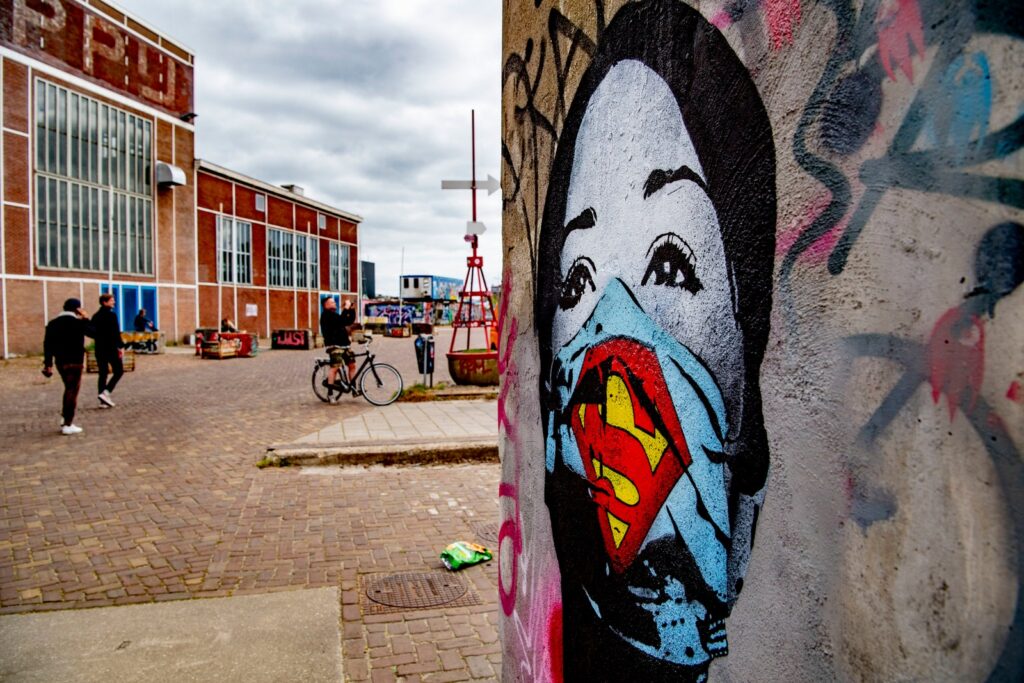 Amsterdam’da bulunan, hemşire maskesi üzerinde Süpermen logosu bulunan duvar resmi pandemiyle karşı karşıya olan sağlık çalışanlarını selamlıyor. Her birinin süper kahraman olduğunu biliyorduk ancak böylesinde bir salgında canları pahasına bizleri kurtarmak için savaş veren bütün sağlık çalışanlarına selam olsun. Sizler filmlerde hayal edilen süper kahramanlardan daha güçlüsünüz!